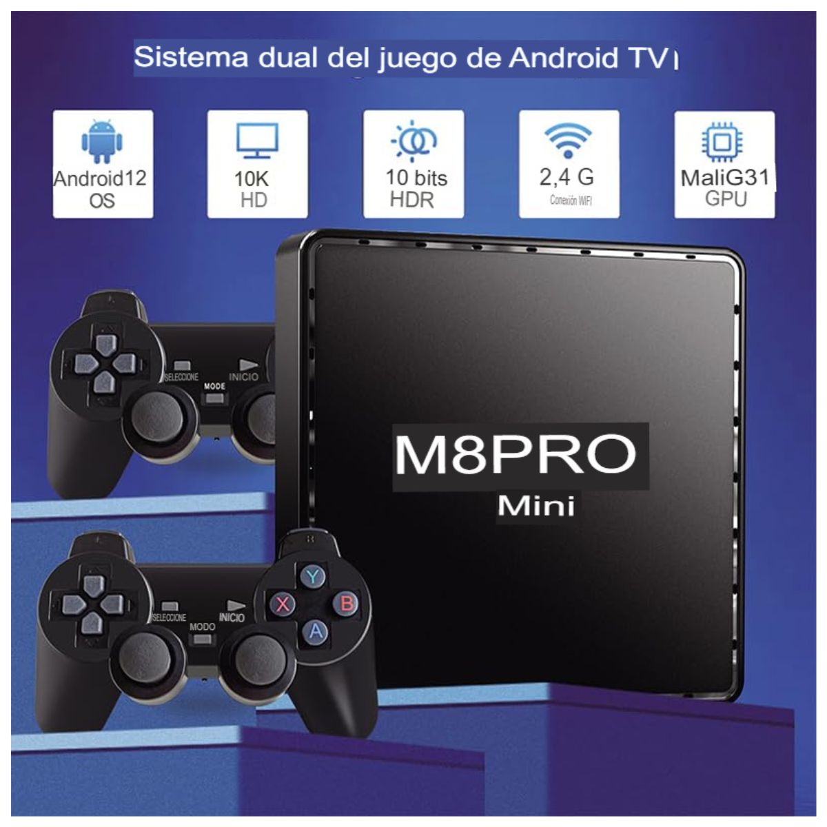 Sumérgete en la nostalgia de los juegos clásicos con la 2 Controles + Consola Mini M8 Pro. Equipada con una memoria de 64 GB, salida HDMI 4K y más de 1000 juegos integrados, esta consola te ofrece una experiencia de juego retro incomparable.