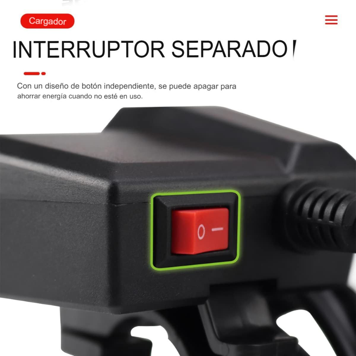 - Sistema de Encendido/Apagado: Incluye un interruptor de encendido/apagado para controlar el flujo de energía y evitar el consumo innecesario de batería.
