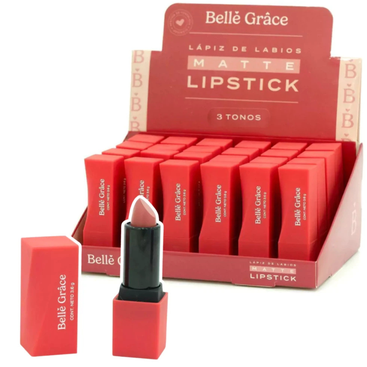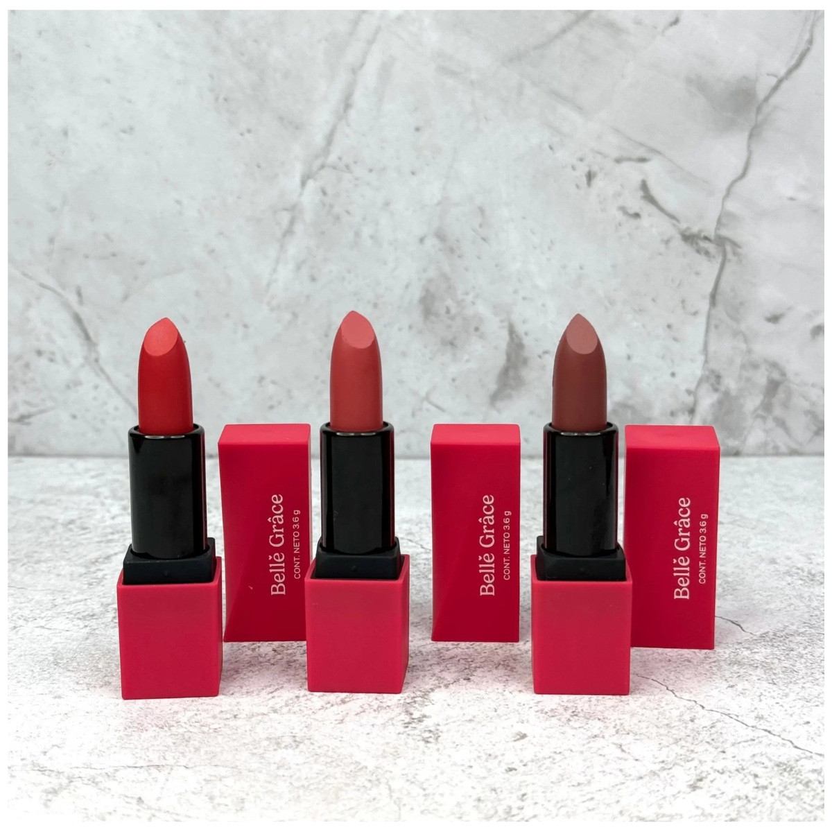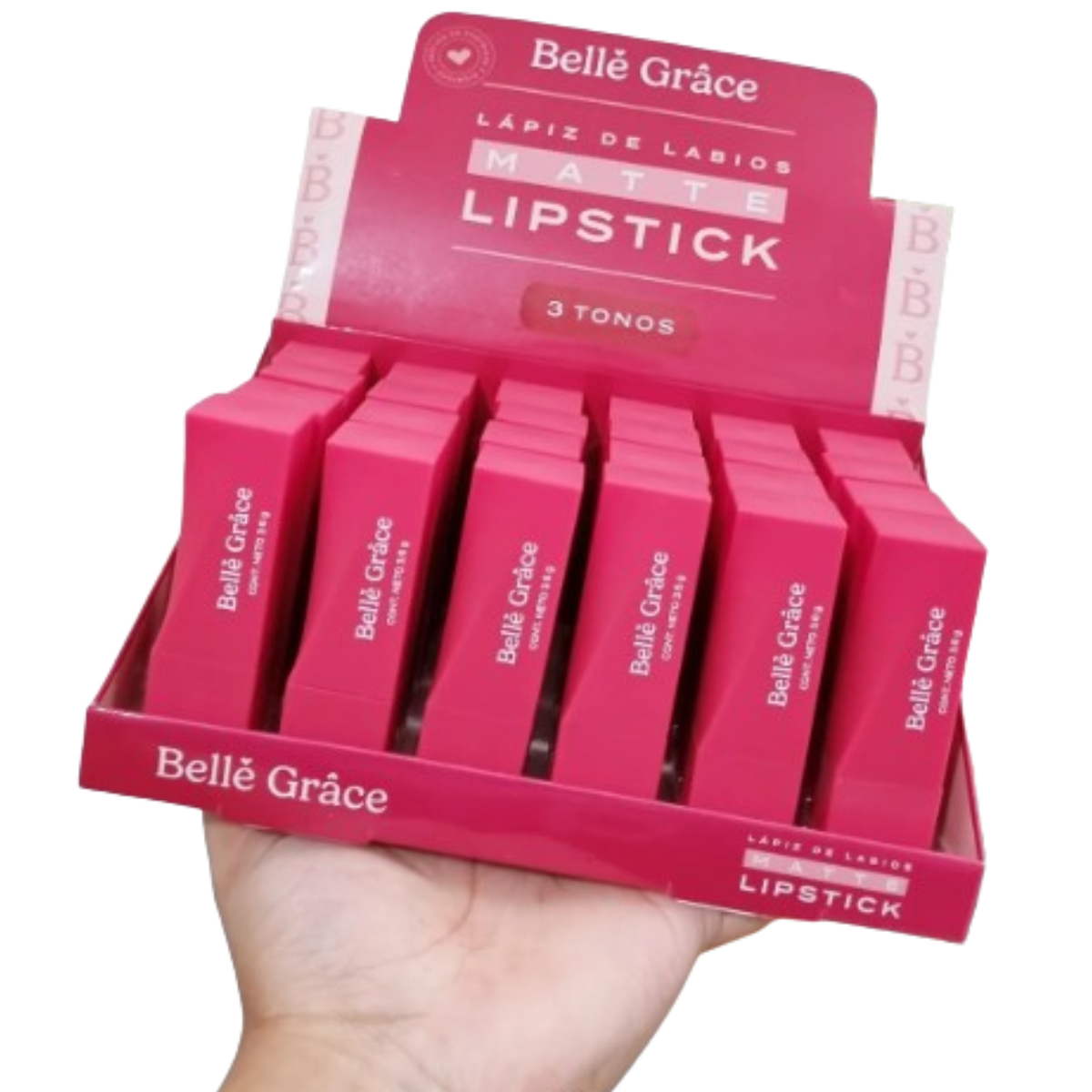 ¡El labial más divertido y nutritivo que llevarás! Este Labial Barra- Belle Grace Matte Lipstick, combina una fórmula de alta cremosidad con un empaque único que recuerda unos bordes suaves. Perfecto para coleccionistas de maquillaje original, para quienes buscan labios suaves para dejarlos brillantes todo el día.