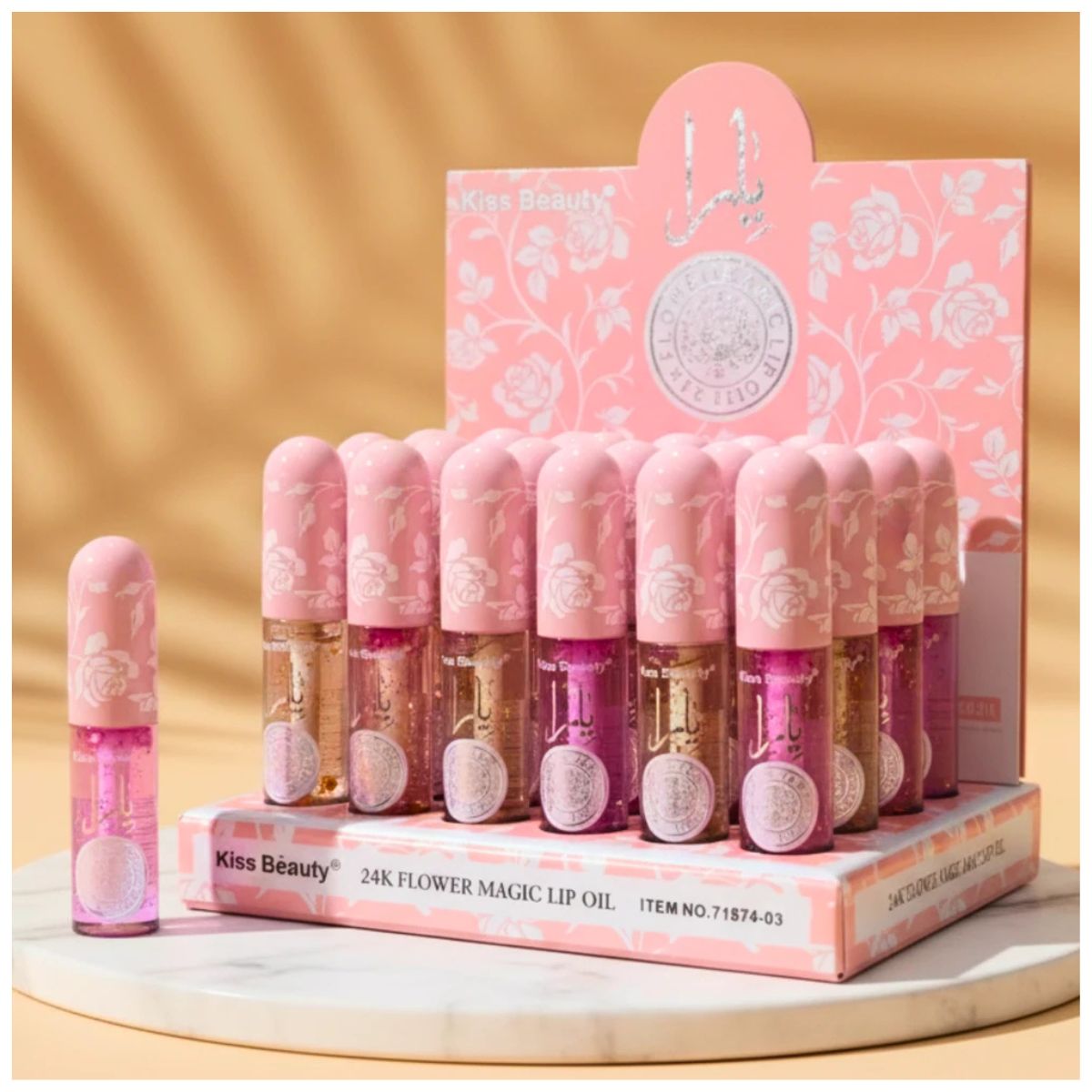 ¡El labial más divertido y nutritivo que llevarás! Este Labial Líquido Brillo Kiss Beauty - 24K, de la línea 24K Magic Lip Oil, combina una fórmula de alta hidratación con un empaque único que te se te adaptara sin problemas a tu estilo diario. Perfecto para coleccionistas de maquillaje original, para quienes buscan labios suaves para dejarlos brillantes todo el día.