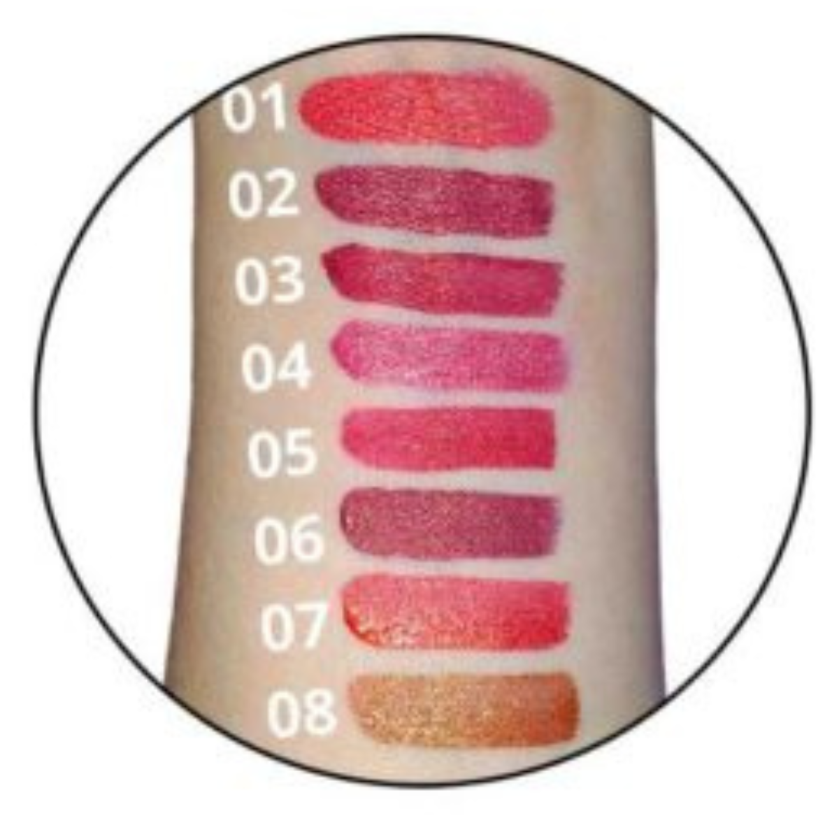 - Set de Tonos: El set incluye varios brillos de labios en una paleta de diferentes colores pastel o matte (tonos claros y fuertes).