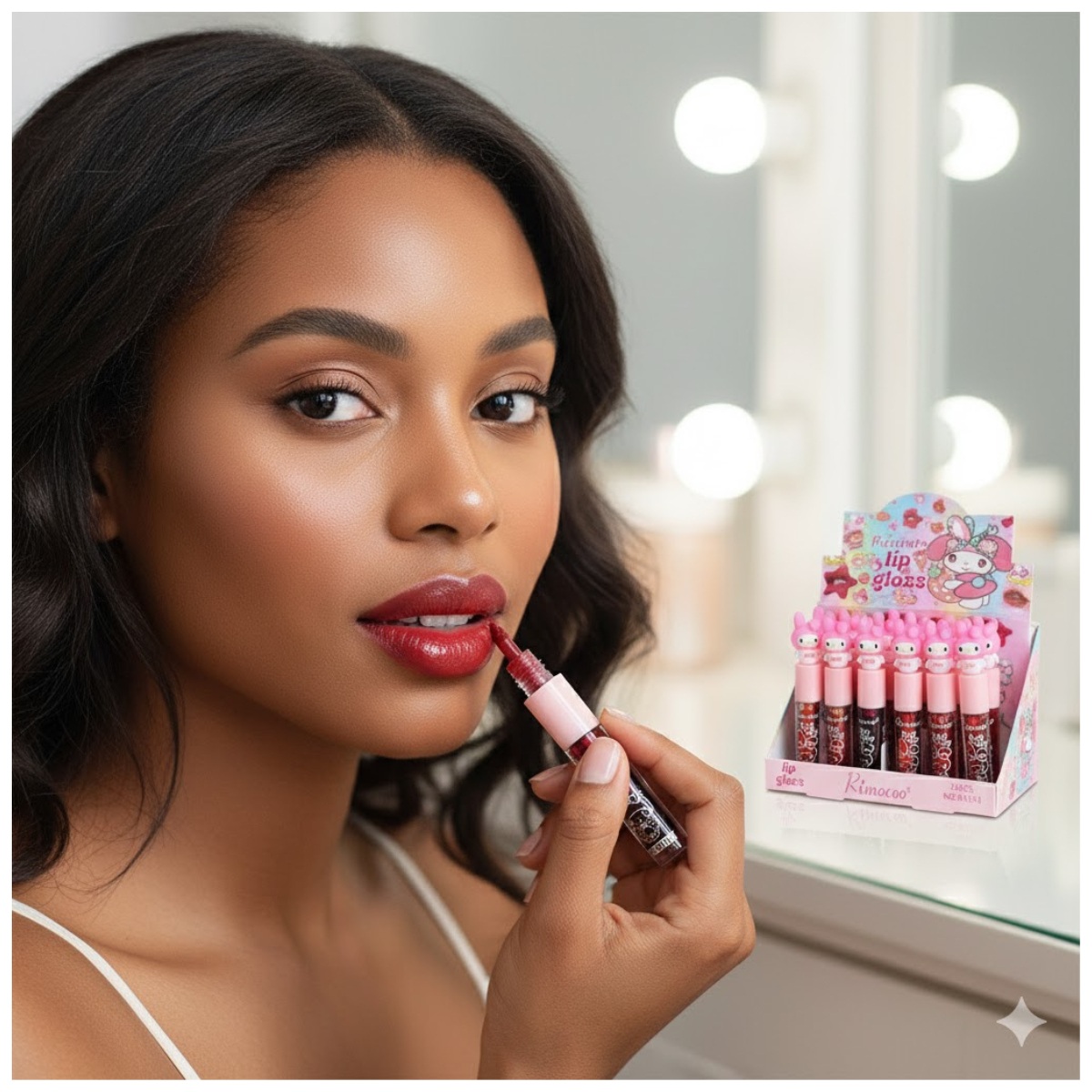 ¡El labial más divertido y nutritivo que llevarás! Este Labial Líquido de Rimocoo - Lip Gloss combina una fórmula de alta hidratación con un empaque único que combinara con tu estilo. Perfecto para coleccionistas de maquillaje original, para quienes buscan labios suaves para dejarlos brillantes todo el día.