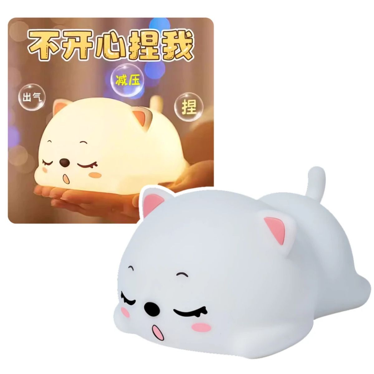 Ilumina tu espacio de trabajo con la Lampara Gato Dormilón Nocturno LED. Esta cautivadora lámpara no solo ilumina tu escritorio, sino que también agrega un toque celestial a tu entorno, creando un ambiente propicio para la creatividad, perfecto para los niños que le tienen miedo a la oscuridad, es el compañero que les permitirá dormir sin problemas.