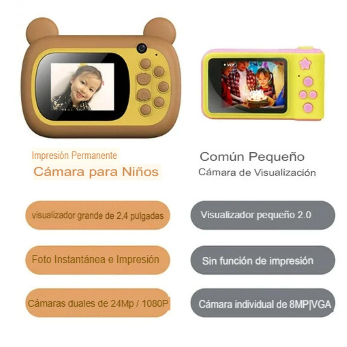 ¡Conoce a la Mini Impresora + Cámara Oso Marrón! Preserva tus recuerdos de manera instantánea con la mini impresora de fotos térmica inalámbrica de bolsillo. Su diseño compacto te permite llevar contigo la magia de imprimir fotos en cualquier momento y lugar.
