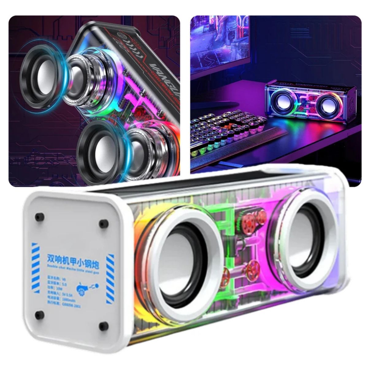 Siente la música en cualquier lugar, conoce el increíble Parlante Tipo Subwoofer LED Mecha A88. Sumérgete en una experiencia musical excepcional. Diseñado para acompañarte en tus aventuras al aire libre, este altavoz portátil combina bajos potentes, conectividad inalámbrica para crear el ambiente perfecto.