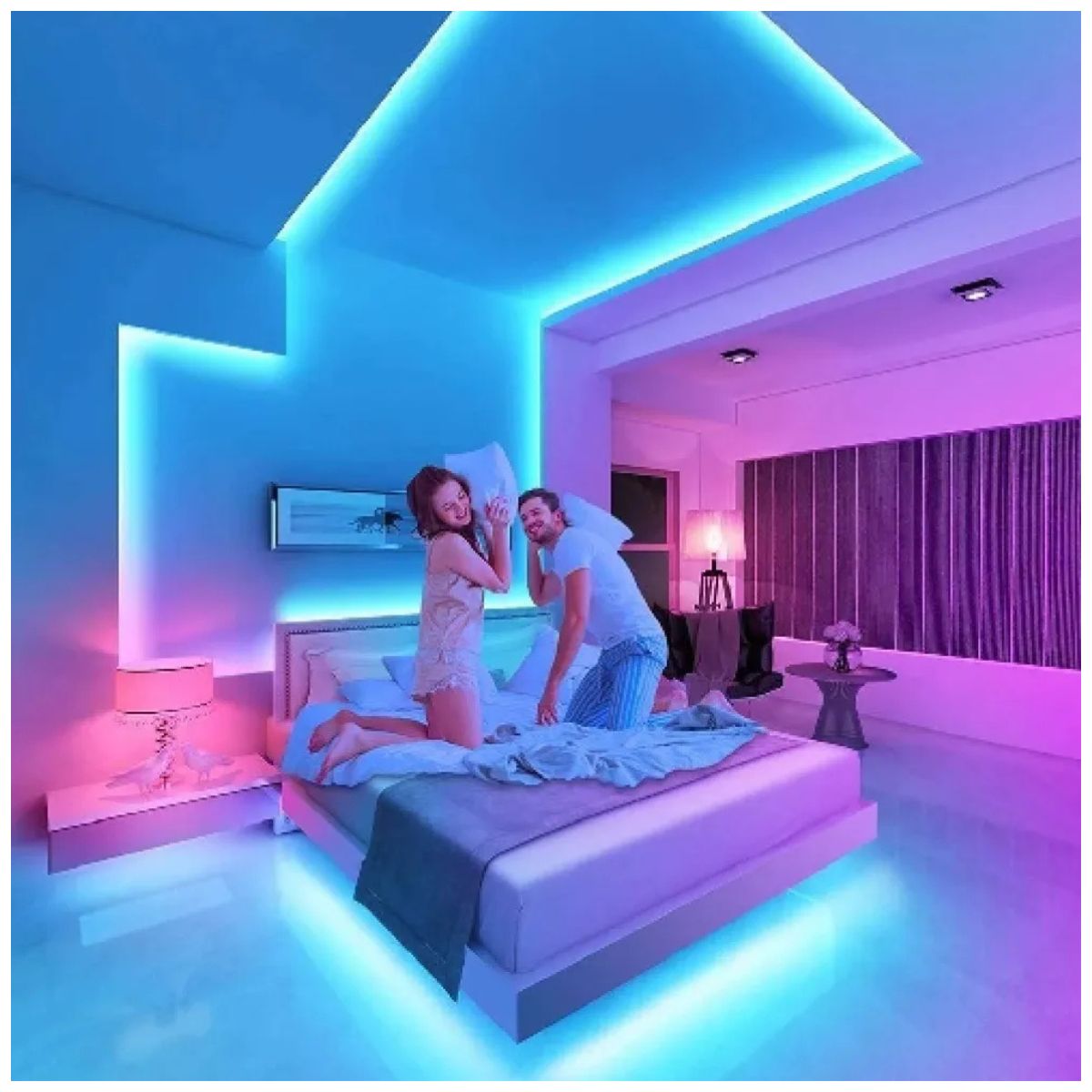 - Ambiente Personalizado: Con una amplia gama de colores y opciones de intensidad, te permite personalizar cada rincón de tu hogar. Crea un ambiente acogedor para relajarte o anima la fiesta con colores vibrantes.