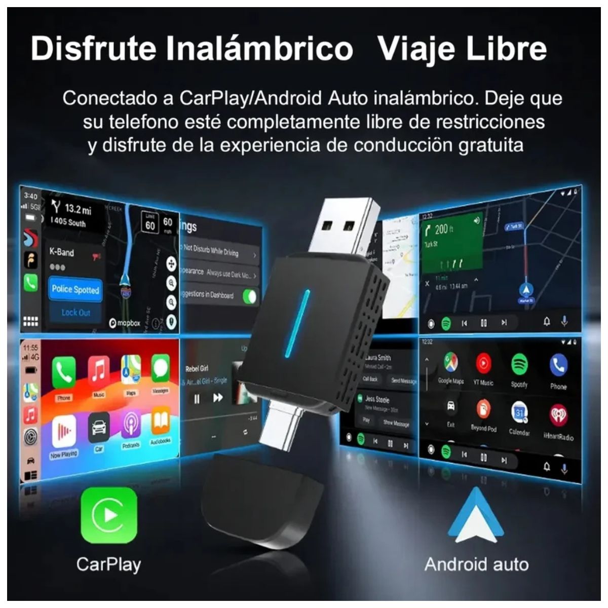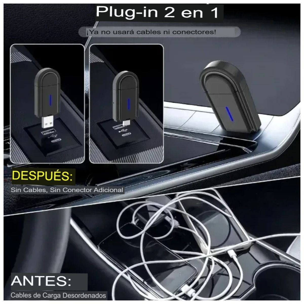 Conoce al increíble producto USB Adaptador 2 en 1 + CarPlay + Android. Este dispositivo convierte las conexiones cableadas de fábrica de Apple CarPlay y Android Auto en inalámbricas, permitiendo una integración perfecta con el sistema de infoentretenimiento de su automóvil sin la necesidad de cables.